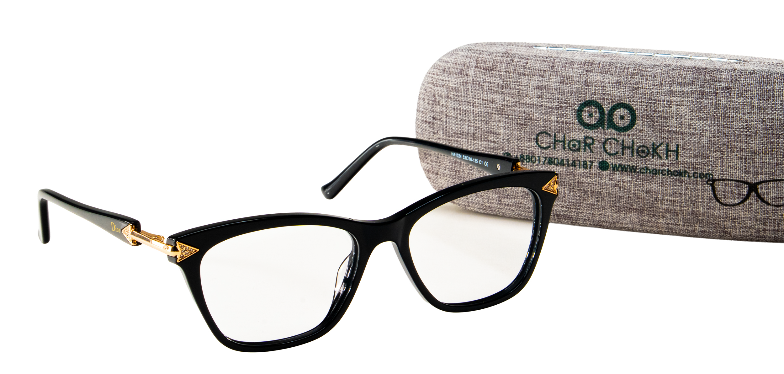 Premium Dior Cat-Eye Black & Gold Eyeglasses